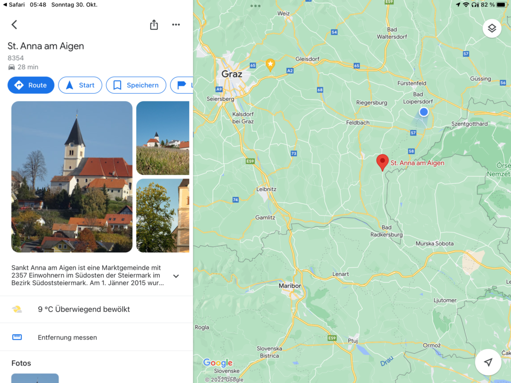 Sankt Anna am Aigen Parkplatz in der Nähe des Hauptplatzes gratis ca. 10 Plätze öffentliches Wc und WaschgelegenheitSupermarkt in der NäheAusgangspunkt für Wanderungen und Radausflüge